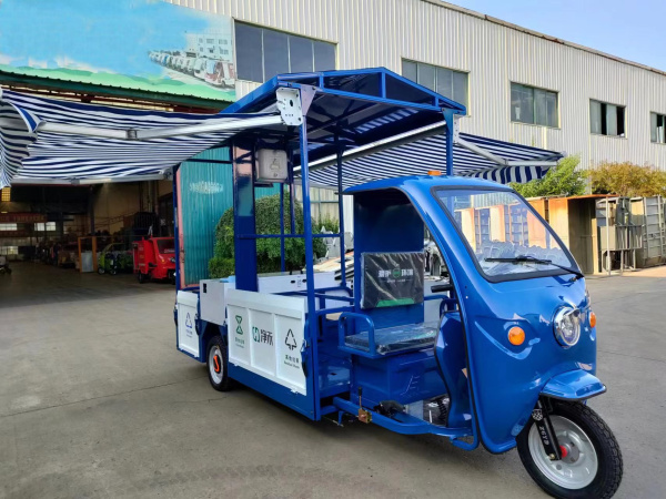 可拆卸式車廂方便運(yùn)輸,車廂可一次裝載6個(gè)國標(biāo)240L垃圾桶; 加高的防雨蓬,左右兩側(cè)裝有可外延伸1.5米伸縮式遮陽棚,蓬內(nèi)設(shè)有LED日光燈輔助照明; 工具箱處設(shè)有洗手盆,車載塑料清水水箱,以及車載不銹鋼污水水箱,即滿足用戶清水洗手,又不造成污水拋灑; 整車后垃圾框、頂棚、支撐桿全部采用螺栓連接,方便發(fā)貨運(yùn)輸; 整車可增配車載垃圾稱重系統(tǒng)、車載清洗系統(tǒng); |